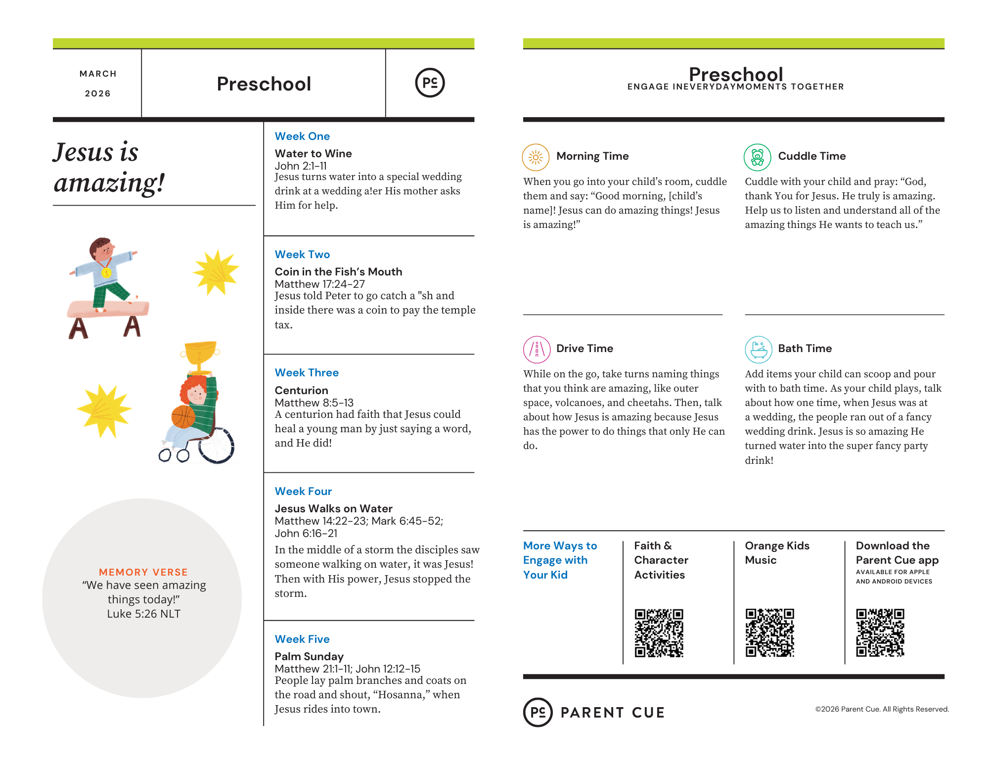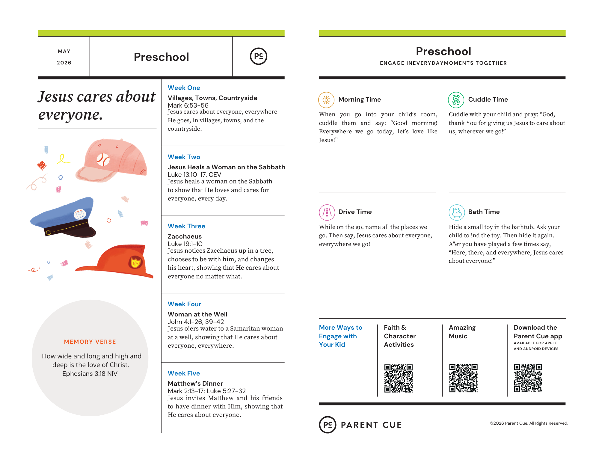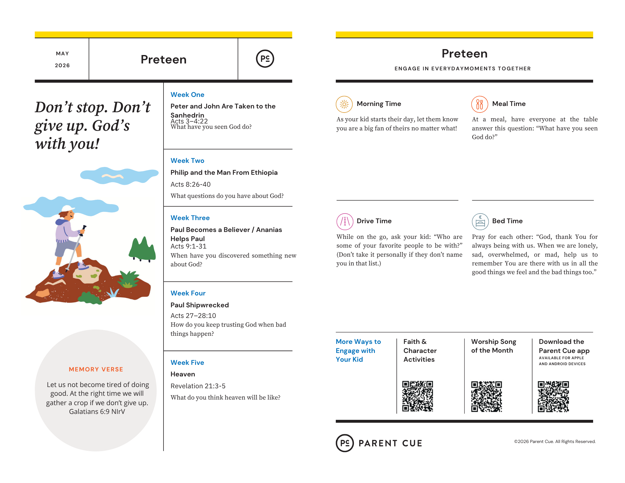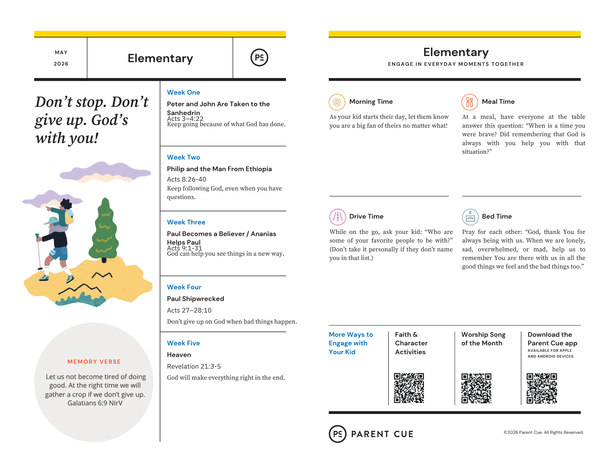 The monthly Parent Cue keeps parents in the loop about what their kids are learning at church. Continue the faith conversations at home and create meaningful time together!